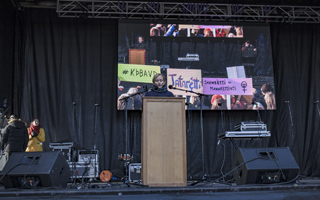 Tíminn er runninn upp til að verka og láglaunakonur á Íslandi fái allt það pláss sem við eigum skilið, sagði Sólveig Anna Jónsdóttir, formaður Eflingar, þegar hún ávarpaði samstöðufund kvenna á Arnarhóli á kvennafrídeginum 24. október en yfirskrift dagsins í ár var Breytum ekki konum, breytum samfélaginu. Sólveig sagði að konur væru ekki útsöluvara, við erum stoltar af stórkostlegu mikilvægi okkar og við einfaldlega, einfaldlega setjum fram í fullri og mikilli og grafalvarlegri alvöru þá kröfu um að við fáum það sem við eigum allan heimsins rétt á; mannsæmandi laun fyrir unna vinnu!Ræða Sólveigar í heild sinni: Kæru systur í baráttunni, ég gleðst innilega yfir því að fá að vera hér með ykkur í dag. Ég gleðst innilega yfir því að þið hafið með því að leggja niður störf, með því að neita að veita aðgang að vinnuaflinu ykkar í stutta stund, sýnt þjóðfélaginu óumdeilanlegt og stórkostlegt mikilvægi ykkar og dregið fram í dagsljósið það hneyksli að enn skuli konur þurf að þola að vera verðlagðar lægra en karlmenn fyrir vinnuframlag sitt.Og ég gleðst innilega yfir því að konur á Íslandi hafi á síðustu öld borið gæfu til þess að bera kennsl á þá kúgun sem þær voru beittar, og innblásnar af róttækum og sögulegum frelsis-straumum sagt þeirri undirsettu stöðu sem þær höfðu verið látnar lifa við stríð á hendur. Við stöndum í sögulegri þakkarskuld við þær konur.Kæru félagar,Konur hafa þurft og þurfa enn að horfast í augu við þá kerfisbundnu kúgun sem þeim hefur verið gert að lifa við, um það ofbeldi sem þær þurfa að lifa við, um samfélag veikt af kapítalískri klámvæðingu þar sem kvenlíkaminn er ekkert annað en einnota drasl, um tilveru í samfélagi þar sem þær eru hlutgerðar og hæddar og smánaðar.Við horfum hvor á aðra og viðurkennum að konur eru ekki aðeins beittar kúgun af hálfu karla sem finnast þær einskis virði, heldur af efnahagskerfi sem sér bókstaflega ekkert athugavert við að græða á aldagamalli fyrirlitningu á kvennastörfum, á aldagamalli fyrirlitningu á þekkingu kvenna, á aldagamalli trú á það að það sem konur kunni sé í eðli sínu annars flokks útsöluvara og það hljóti allir að vera sammála um. En við höfum fréttir að færa; við erum ekki útsöluvara, við erum stoltar af stórkostlegu mikilvægi okkar og við einfaldlega, einfaldlega setjum fram í fullri og mikilli og grafalvarlegri alvöru þá kröfu um að við fáum það sem við eigum allan heimsins rétt á; mannsæmandi laun fyrir unna vinnu!Breytum ekki konum, breytum samfélaginu. Breytum ekki kvennavinnustöðum; vandamálið er ekki að það vanti karla í kvennastörfin, vandamálið er að kvennastörfin eru verðlögð af innblásinni og grimmilegri nísku og að enginn hefur viljað segja sjúku arðráninu á verka og láglaunakonum, þeim sem vinna konuvinnuna, stríð á hendur. Við þurfum ekki karlsmannshendur til að vinna störfin okkar, til að kenna samfélaginu að meta okkur að verðleikum, við reisum konuhnefana okkar á loft og segjum: Þekkirðu þessa, þetta er systir hennar! Við segjum: Stopp hingað og ekki lengra! Við ætlum sjálfar að leiða eigin baráttu. Ekkert um okkur án okkar! Við krefjumst mannsæmandi launa fyrir alla okkar unnu konuvinnu!Við verka og láglaunakonur ætlum að viðurkenna, allar sem ein, að það er engin leið, engin, til að tryggja gott og frjálst líf fyrir verkakonur nema að hér verði farið í endurúthlutun á gæðunum; að berjast fyrir því að vinnuaflið fái eðlilegan og réttlátan skerf af auðæfunum sem það skapar með vinnu sinni.Við ætlum að vera herskáar og skipulagðar; við höfum verið efnahagslega jaðarsettar og við höfum verið pólitískt jaðarsettar en nú ætlum að taka okkur pólitískt pláss og efnahagsleg völd!Í jafnréttisparadísinni hefur sannarlega ekki verið farið um okkur mjúkum höndum, þvert á móti, okkur hefur verið mætt af harðneskju og fyrirlitningu en í stað að brotna undan því sem á okkur hefur verið lagt rísum við upp! Við sættum okkur ekki lengur við óbreytt ástand!