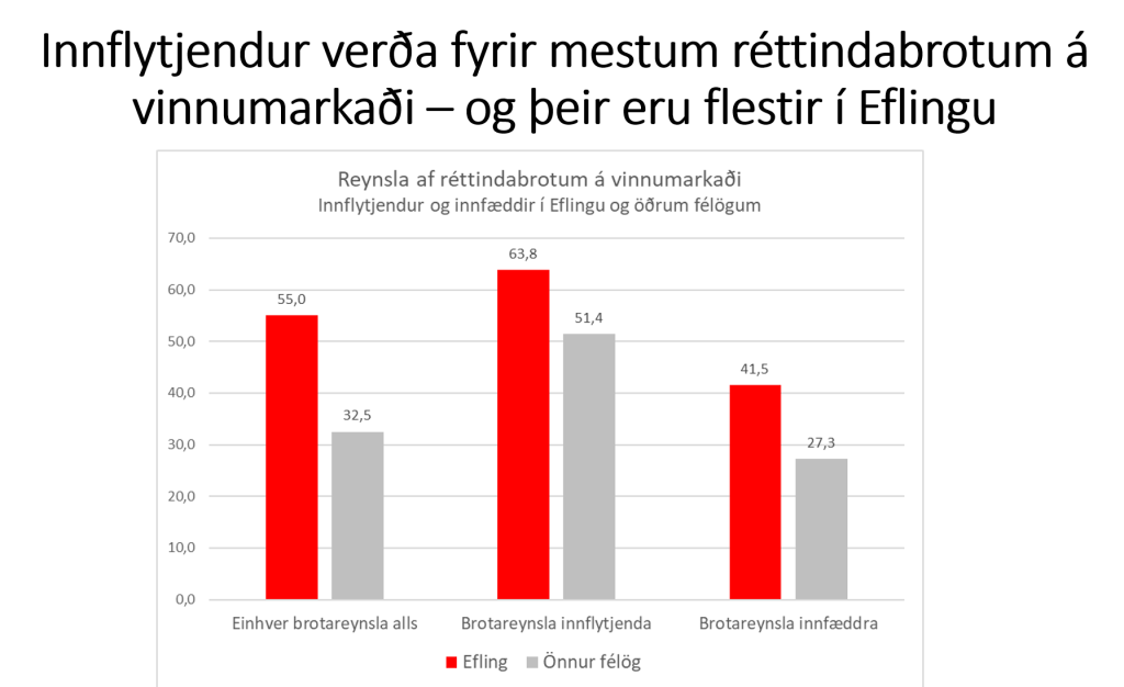 - Hátt í 52% aðfluttra Eflingarkvenna hafa orðið fyrir brotum á vinnumarkaði.