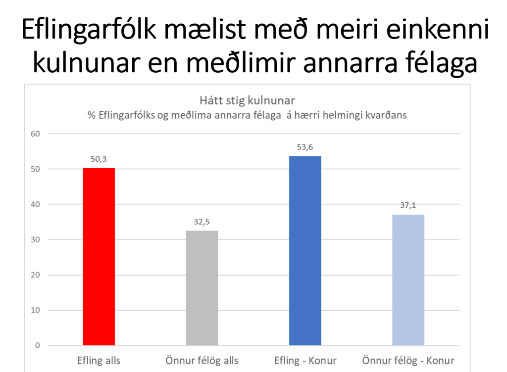 - Eflingarkonur mælast hæstar allra í kulnunareinkennum, en ríflega 53% Eflingarkvenna sýna merki kulnunar.
