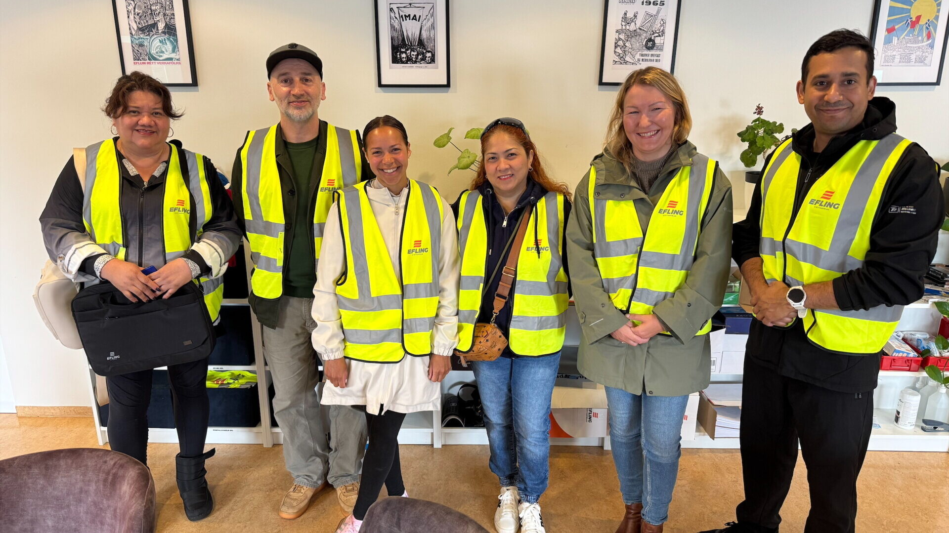 Myndin sýnir vettvangsfulltrúa á leið í vinnustaðaheimsóknir í vikunni.