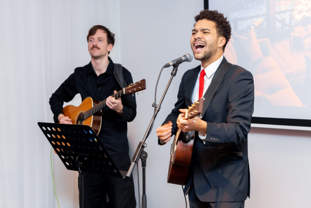 Dýrindis jólaréttir voru á borðum, æsilegt happdrætti fór fram og þá skemmtu Unnsteinn Manuel og Daníel Friðrik Böðvarsson gestum með ljúfum tónum.
