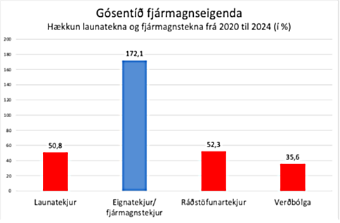 Gósentíð fjármagnseigenda síðan 2020 er bæði vegna mikillar aukningar fjármagnstekna og mikilla skattfríðinda sem þær njóta. En umfram allt er slík góðgerðarstarfsemi ríkisins í garð þeirra ríkustu, sem felst í lægri álagningu á fjármagnstekjur en launatekjur, bæði óþörf og óréttlát. Raunar er hún skaðleg því hún ýtir undir verðbólgu.