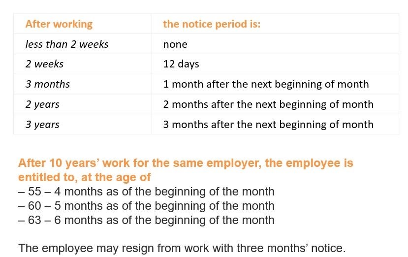 Considering the current situation on the labour market, we want to remind you that the labour law and the collective agreements still stand in full force. You still hold your rights to payments and notice periods, just as you did before.Read this email to refresh your knowledge on your rights in case of termination or mass layoffs.The notice periods in the private sector are as follows: