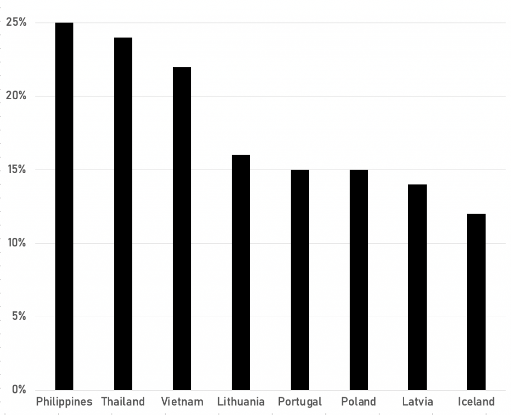 | Philippines | 25% | 96 |