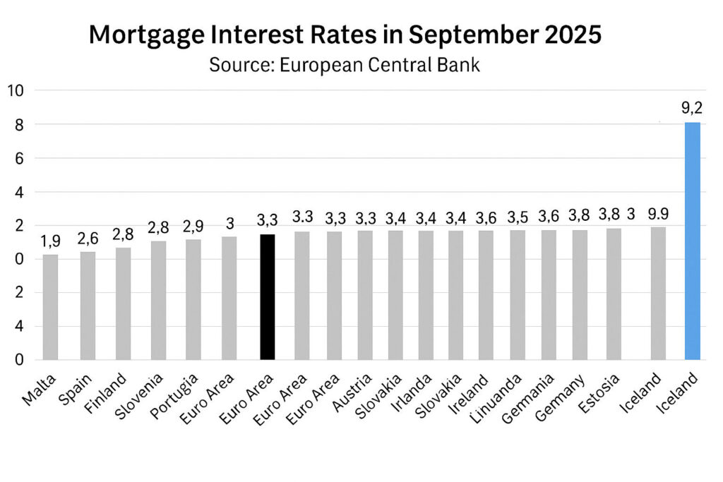 Iceland has long lived in a high-interest environment. Mortgage rates for households and loan rates for businesses have been much higher here than in neighbouring countries, as shown in the comparison in the appendix. This means that the cost of capital forms an excessively large share of expenses for both households and companies, which is a serious indictment of the Icelandic financial system.