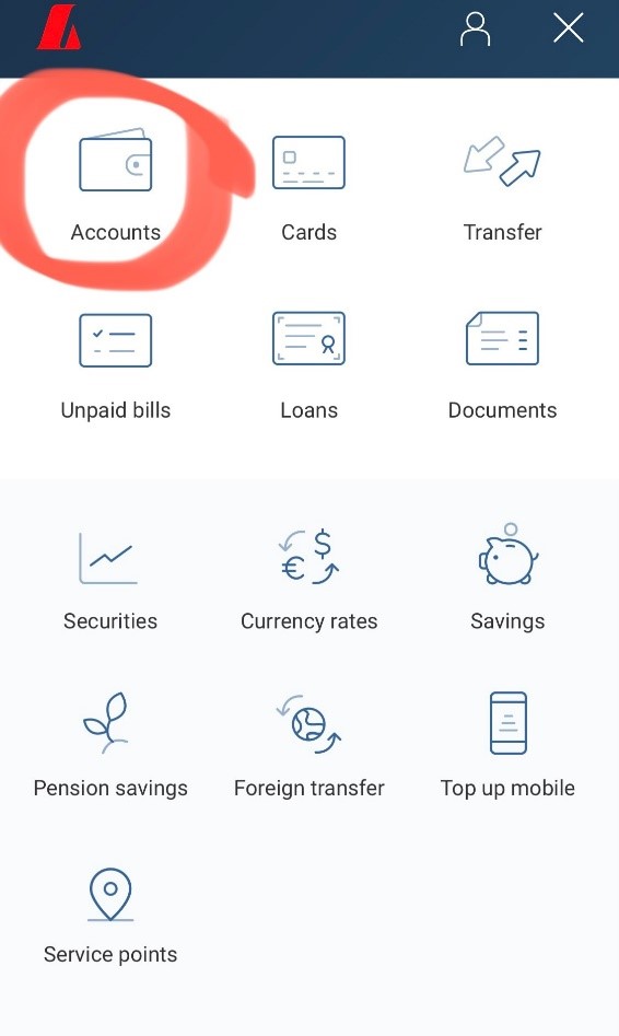 - Open the app. See the right top corner, choose the “accounts” icon.