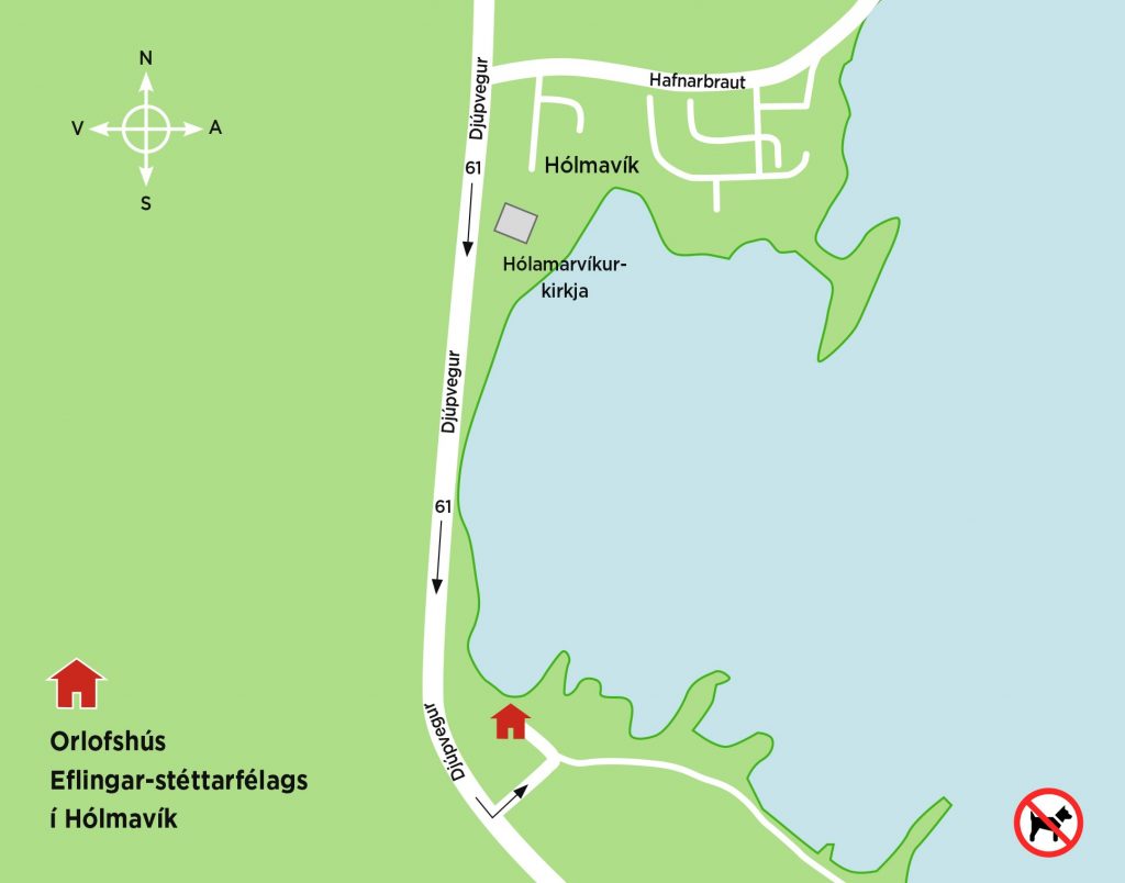 Nýlegt sumarhús rétt fyrir utan Hólmavík, í göngufæri meðfram fjörunni. Húsið er 50 fm. með þremur herbergjum, tvö á neðri hæð og eitt í risi. Eldhús og stofa í einu rými á neðri hæð og setustofa með svefnsófa í risi. Baðherbergi með sturtu og þvottavél. Gistirými, er fyrir 7 manns, tvíbreið rúm í tveimur í herbergjunum, tvö einbreið rúm í einu herbergi og auk þess svefnsófi í stofu á efri hæð. Sængur og koddar eru fyrir 7 manns. Húsið er vel búið með öllum helsta búnaði: sjónvarp, ísskápur, uppþvottavél, bakarofn, örbylgjuofn og þvottavél, gasgrill og útihúsgögn. Öll ræstiefni og áhöld til þrifa eru til staðar. Húsið stendur á fallegum stað niður við flæðarmálið á milli Hólmvíkur og golfvallarins. Það er hvorki heitur pottur né uppþvottavél.