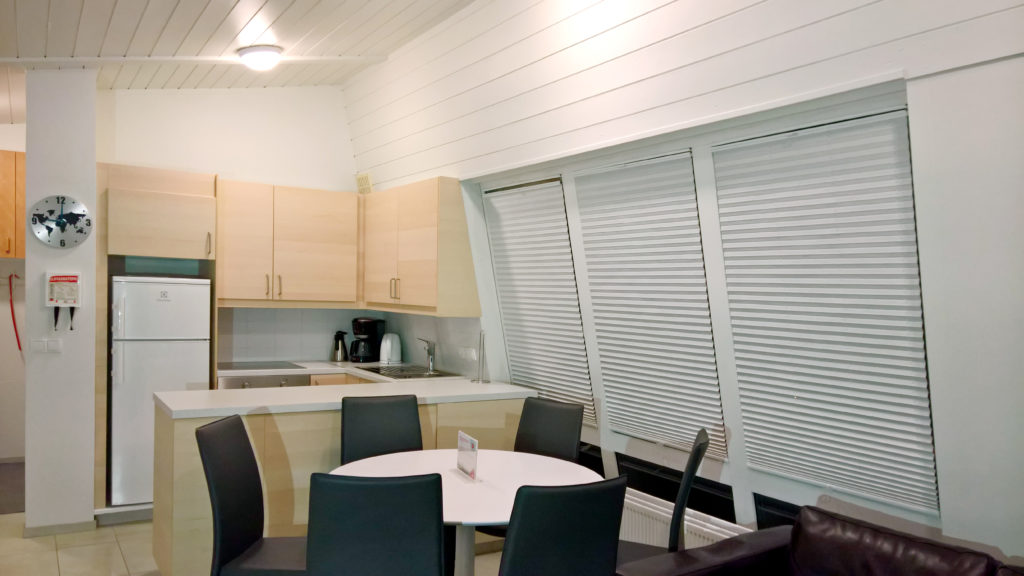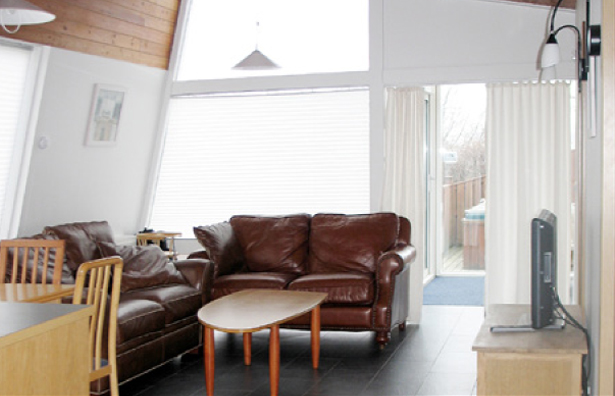 Í húsunum eru tvö herbergi þar af eitt hjónaherbergi með tvíbreiðu rúmi og eitt stórt herbergi með tvíbreiðu rúmi og koju með tveimur rúmstæðum. Svefnstæði og sængur og koddar fyrir sex. Stofa og eldhús í sameiginlegu rými og sólskáli. Baðherbergi með sturtu. Allur helsti útbúnaður fylgir s.s. sjónvarp, ísskápur, eldavél, örbylgjuofn og gasgrill. Einnig öll ræstiefni og áhöld.