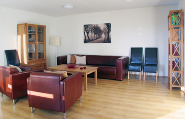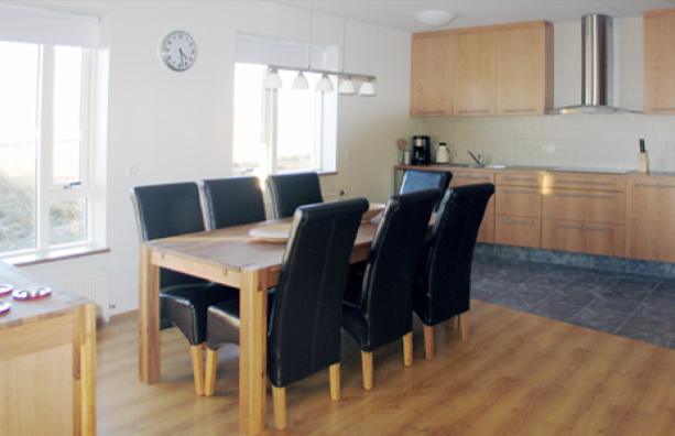 Húsið er á einni hæð og eru 2 herbergi með 160cm breidd rúmum, 3 herbergi með 120cm rúmum. Stórt eldhús og stofa og sjónvarpsstofa ásamt snyrtingu og stóru baðherbergi með sturtu. Góður bakgarður, pallur, grill og garðhúsgögn. Svefnpláss er fyrir 7. Gistirými sængur og koddar fyrir 7 manns. Allur helsti útbúnaður fylgir þ.e. sjónvarp, ísskápur, eldavél, örbylgjuofn og gasgrill. Einnig öll ræstiefni og áhöld.