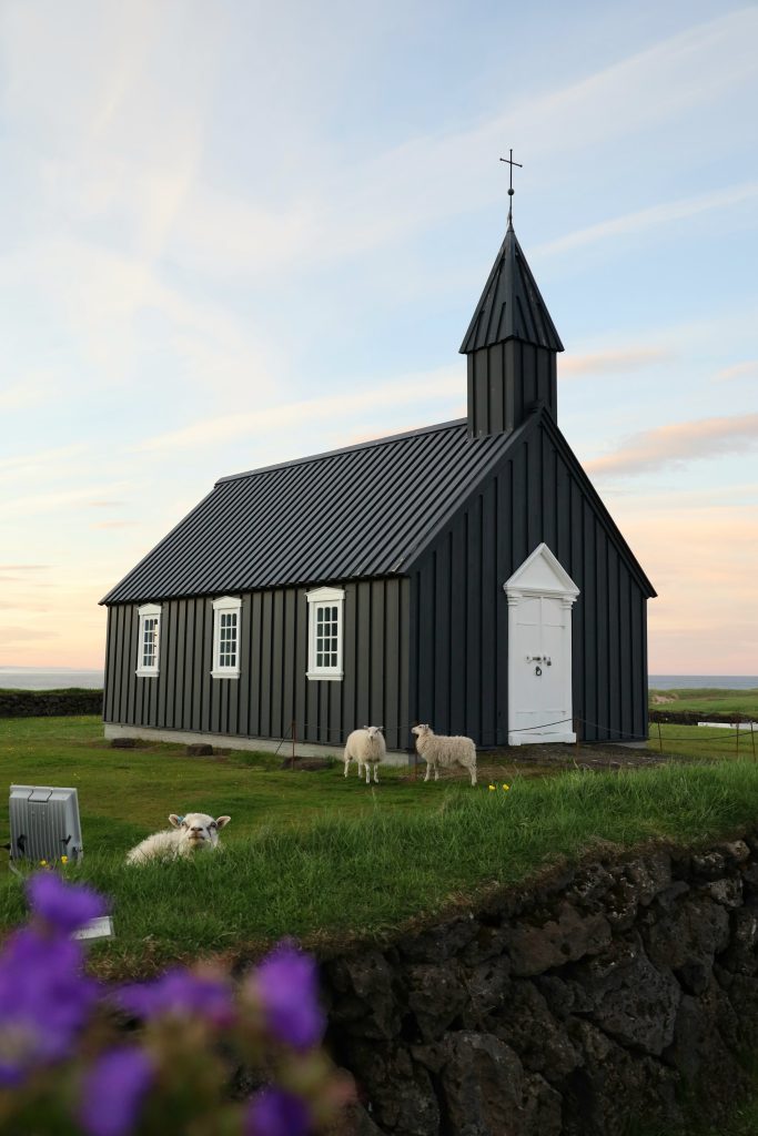 Zdjęcie owiec przed kościółkiem autorstwa Agnieszki Górki