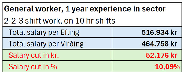 Efling potwierdza informacje o przypadkach, w których pracodawcy informowali pracowników, że powinni oni pracować na podstawie układu zbiorowego Virðing zawartego ze stowarzyszeniem pracodawców SVEIT. Celem jest skłonienie pracowników do zaakceptowania niższych zarobków i gorszych warunków.