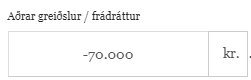 Ef um annars konar greiðslur er að ræða (t.d. húsaleiga greidd til atvinnurekanda eða fyrirframgreidd laun) er hægt að nota reitinn Aðrar greiðslur / frádráttur. Setja þarf mínus fyrir framan töluna ef reikna á með frádrætti: